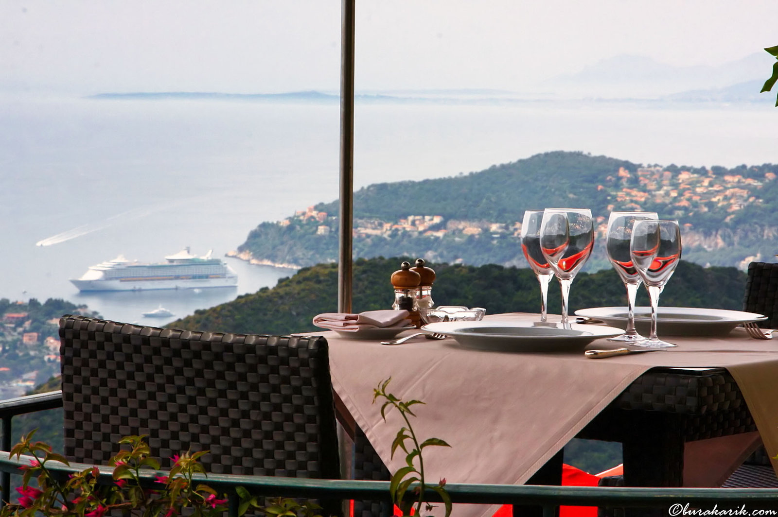 A view from La Chèvre D’OR EZE Restaurant which has been used for dining scene in the 'Bucket List' movie in which Jack Nicholson and Morgan Freeman has played role. If you watched that movie, you'll probably remember. An amazing resturant with exception view of Cote d'Azur and extreme quality of food & service. It's located in famous medieval Eze village. Click here to visit their official site.