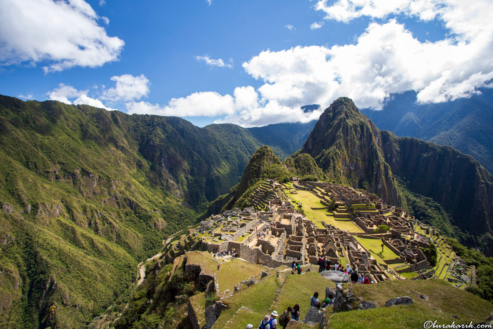 Machu Picchu is one of the New Seven Wonders of the World declared in 2007 and has been listed as a UNESCO World Heritage Site since 1983. It was built between 1450 and 1460 by the Inca emperor Pachacuti. However, it was abandoned during the Spanish Conquest approximately eighty years after its establishment. Some research claims that the native population died due to a disease called Smallpox before the conquest. Despite the Spaniards destroying all structures related to the Incas for religious reasons during the conquest, Machu Picchu remained undiscovered until today because they could not find it. Its rediscovery was made possible in 1911 by the American historian Hiram Bingham. When Hiram found it, the site was unrecognizable due to trees and overgrown grass. For centuries, Machu Picchu remained hidden from the eyes, like a lost and mysterious city. It contains terraced fields, temples, houses belonging to the nobility, and squares for the common people. It is known that various animals, including virgin girls, were sacrificed to the gods in the temples. Machu Picchu has a very impressive and mystical atmosphere, and there is still a population of llamas living there.