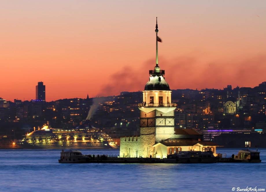 İstanbul'da huzurlu bir akşamda Kız Kulesi'nin bu nefes kesici görüntüsünü yakaladım. Güneş zarif bir şekilde batarken gökyüzü turuncu ve pembe tonlarına boyandı, Boğaz üzerinde büyülü bir parıltı yayıldı. Ufuk ve şehir manzarasının tek bir uyumlu sahneye dönüştüğü bu anı yakalama şansına sahip oldum. Kulenin kendisi, solmuş bir şehir arka planına karşı ışıklarının canlı bir şekilde parıldamasıyla zarif bir şekilde duruyor. Aşağıdaki su, gökyüzünün canlı renklerini yansıtarak parlıyordu. Bu fotoğrafın kompozisyonu, kulenin ön planda hakim bir yer işgal etmesi, canlı bir şehrin arka planda nefes alması ve doğa ile kentsel yaşamın çelişen enerjilerini sunarak derinlik yaratıyor. Hava koşulları idealdı, net kalkmamız bu tarihi simge yapıyı çevreleyen romantik ortamı artırarak peyzaj üzerine yumuşak bir şekilde yayılmasına izin verdi. Bu anın cazibesini yakalayarak, düşük ışık fotoğrafçılığı için optimize edilmiş ayarlarla standart bir DSLR kamera kullandım. Odak, kulenin karmaşık yapısını vurgulayacak şekilde keskin bir şekilde ayarlandı, alan derinliği ise genişlik hissi vermek için korundu, bu güzel şehre özgü huzur ve aktiviteyi mükemmel şekilde dengelemiştir.
